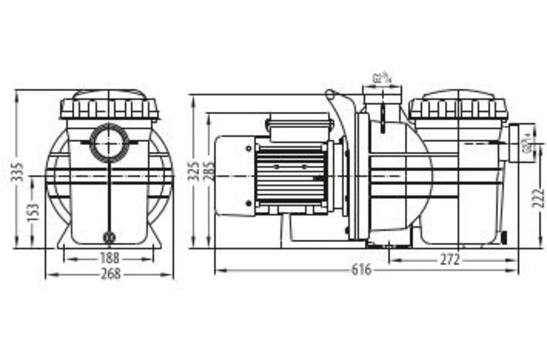 De pomp is tevens in (max) 4 perioden over 24 uur te programmeren en wordt geleverd met communicatie kabel voor start/stop- en 3-snelheden keuze functies via poolcontrollers (zoals bijv. Astral Elite en Sugar Valley). Voorzien van 63mm koppelingen.