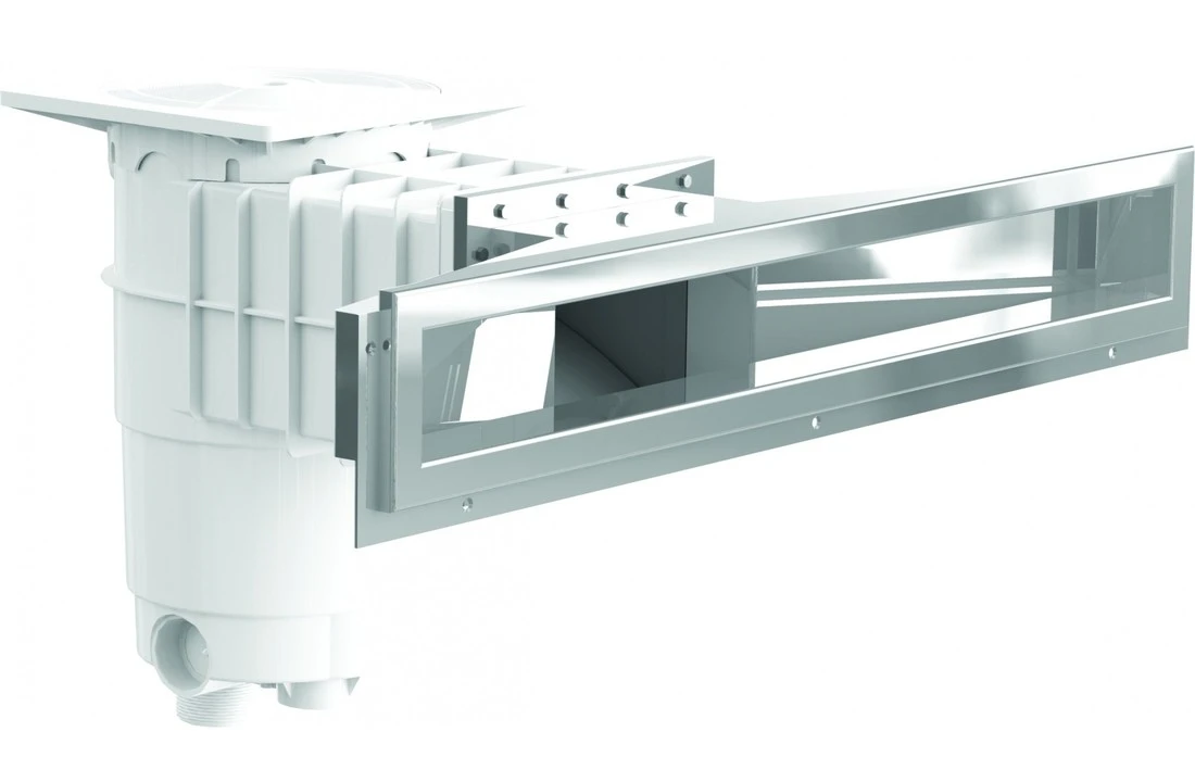 Een verhoging van het waterpeil met enkele centimeters geeft het zwembadproject een interessante meerwaarde. Deze skimmer maakt het mogelijk het waterpeil tot slechts 6 cm onder de rand te verhogen.