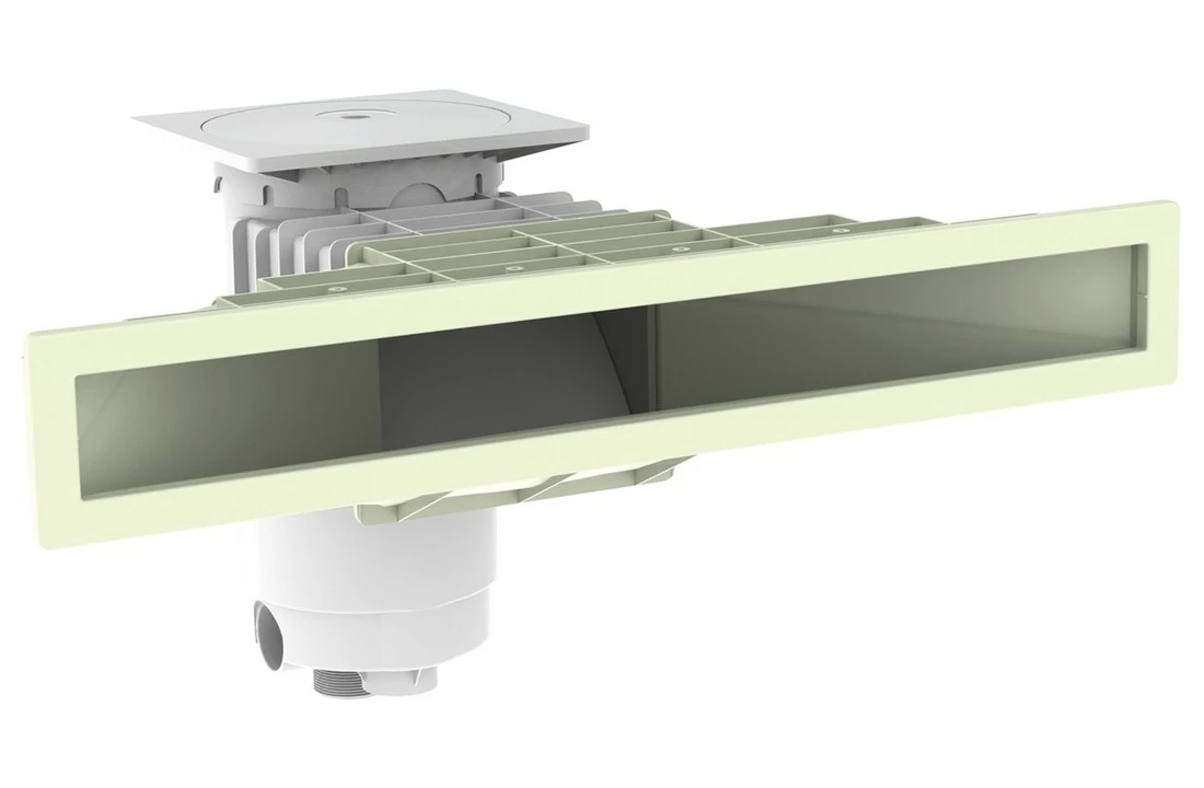Een verhoging van het waterpeil met enkele centimeters geeft het zwembadproject een interessante meerwaarde. Deze skimmer maakt het mogelijk het waterpeil tot slechts 6 cm onder de rand te verhogen.
