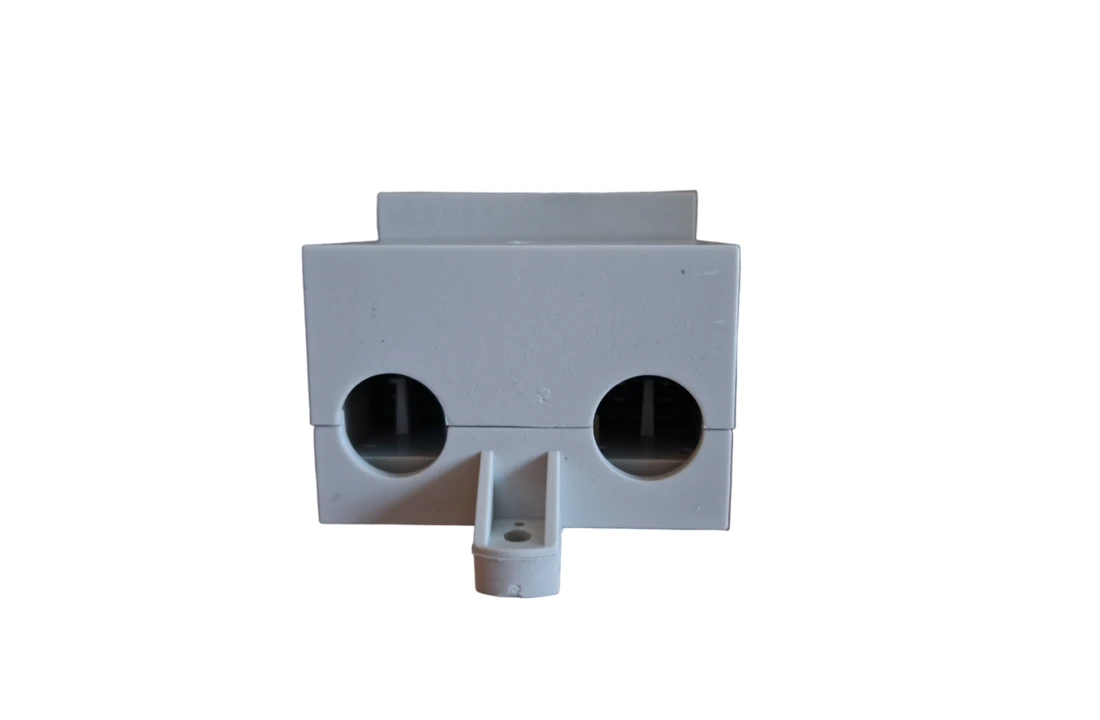 Veiligheidstransformator ingegoten in kunststof behuizing, IP 65, isolatie-klasse B, met gescheiden wikkelingen, primair beveiligd en inclusief temperatuurbegrenzer.